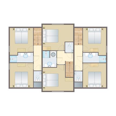 - Six chambres à coucher avec deux lits boxspring pour 1 personne au premier étage