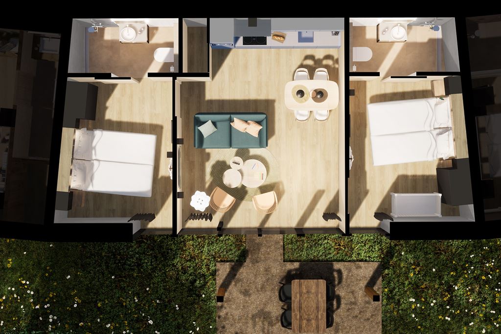 • Deux chambres à coucher avec deux boxsprings 1 personne